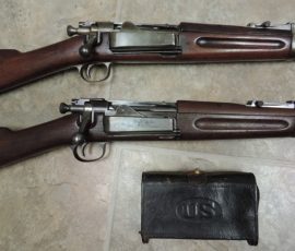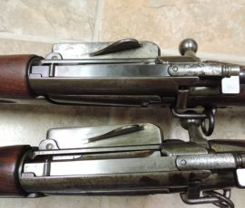 So, now I have two beautiful 1896 Krag carbines. Since they are slightly different in markings, I want to keep them both. I struggled with the this but decided to switch the carbine sight onto the better condition carbine I got first. But, they are both wonderful additions to my collection next to a fully original 1898 Krag rifle and a slightly later nice sporterized Krag. I also have a neat original McKeever US marked ammo pouch with original vintage ammo from 1896 through 1900 headstamp marks. Half of these rounds are tinned and a couple are marked as 1896 Frankford arsenal production to match my 1896 Krag carbines.