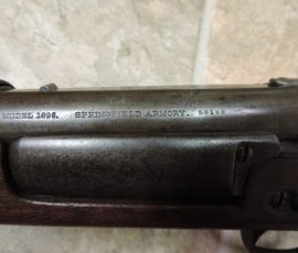 I searched around the internet for parts at well known gunsmith shops, Gunbroker, checked out milsurp rifle and supply houses, read blogs and forums about 1896 carbines, checked firearm classifieds and searched through lots of auction sites for anything that could lead me to an 1896 carbine sight. I found an auction on Proxibid, where I used to do a lot of buying until buyer’s premiums and add-on expenses went through the roof, where there was a listing for an 1896 rifle “Bbl. shortened to 22″ w/ reattached front sight.” The item description did say that the firearm had the correct 1896 carbine rear sight. The serial number given was 31583 and the few pictures in the listing showed a carbine with the correct barrel band in front of the rear sight and a saddle ring. The front sight was clearly dove-tailed. I could not see the rear sight to be sure about it. The serial number given was in the correct carbine range. It appeared, then, that this was an incorrect listing with an item description that was written by someone who didn’t know what they were looking at but possibly to my benefit. People don’t want a cut down rifle posing as a carbine.