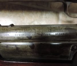 So, the search was on for an authentic 1896 rear sight. I contacted friends and fellow collectors and put the word out. I got numerous comments and responses. I had offers to sell from a couple people who said they had the correct sight. (I got a bunch of spam junk mail from apparent scammers also…Beware!) Evidently, the current market going rate is between $650 and $1000 for one of these rare sights. I was getting quite satisfied, at this time, to keeping the rifle sight in place. Shooting buddy CWO John Miller said finding one of these sights was like finding a Dodo egg. I don’t give up easy.